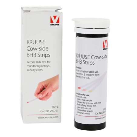 Les bandelettes KRUUSE Cow-Side BHB sont conçues pour mesurer le taux de bêta-hydroxybuturate (BHB) dans le lait des vaches. Cela permet de détecter les taux élevés de corps cétoniques dans le lait, indiquant une possible cétose subclinique. En surveillant régulièrement ce taux, vous pouvez prévenir les troubles hépatiques, la réduction du taux de gestation, la baisse de la production laitière et ainsi éviter une perte de revenus.