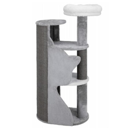 Bel arbre à chat, douillet, recouvert de peluche (polyester) et sisal à griffer, poteaux habillés de sisal naturel et peluche (polyester). Plateforme avec lit douillet déhoussable.
