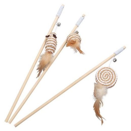 Jouet pour chat, canne à pêche avec plumes et grelot