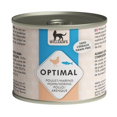 - Ingrédients de qualité supérieure.Nourrissez votre chat avec la pâtée William’s, riche en protéines et sans céréales !Découvrez la gamme OPTIMAL William’s, excellente pour tous les types et les âges de chats. Variez les plaisirs en proposant à votre petit compagnon l’une des 5 saveurs disponibles.