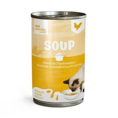 - Conçue avec des ingrédients de qualité supérieure offrant saveur et goût naturel au repas de votre animal.Bubi Nature: Soupe au poulet pour chat, l’alliée santé et bien-être de votre compagnon à 4 pattes.Associée à ses croquettes, la soupe Bubi Nature fera fondre votre chat en lui apportant les nutriments nécéssaires à sa santé urinaire et cardiaque.