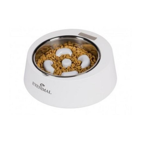 Gamelle pour chien de EYEANIMALContrôler la quantité de nourriture que vous servez à votre animal est primordial. Aujourd’hui, nombreux sont les animaux qui souffrent d’obésité pouvant entraîner des conséquences graves.La gamelle anti-glouton avec balance intégrée vous aide à mieux contrôler les rations de votre animal de compagnie et lui permet de manger moins vite.Caractéristiques de la gamelle EYENIMAL NUTRI100Sa balance intégrée vous permet de peser et d’ajuster les rations de votre animal de compagnie jusqu’à 1500 grammes pour lui servir la quantité de nourriture adaptée à son régime alimentaire. Elle affiche le poids actuel et le poids initial mémorisé.Le système anti-glouton empêche l’animal d’engloutir son repas trop vite ce qui permet de prévenir les ballonnements et les troubles digestifs.Matière : gamelle en acier inoxydable et plastique ABSSystème anti-dérapant pour une stabilité optimaleContenance : 500 mlUnités de mesure : gramme (g)et livre (lb)Dimensions : L 20,5 x l 23,5 x H 9,5 cmAlimentation : 2 piles 1,5 V LR03 (non fournies)