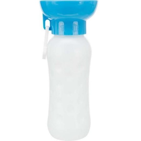 Gourde avec gamelle intégrée pour chienPar simple pression, l’eau remonte dans la bouteille et l’eau s’écoule dans l’écuelleEquipée d’une valve de fermeture et d’un crochet de fixation, cette gourde pourra vous accompagner durant vos balades et randonnées ce qui vous permettra d’avoir toujours de quoi hydrater votre compagnon à porté de main.