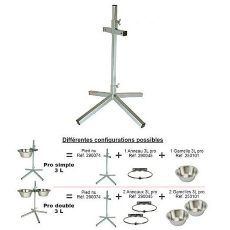 Conception robuste en acier zingué, système professionnel pour gamelles 3 litres, réglable de 18 à 62 cm.