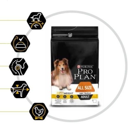 Offrez à votre chien une alimentation adaptée à ses besoins avec les croquettes Pro Plan All Size Light & Sterelised, pour lui permettre de rester en forme et en bonne santé.