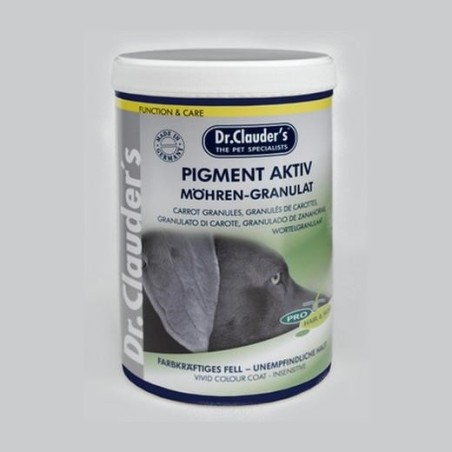 Granulés de carotte pour le soin du pelage des chiensUn complément alimentaire qui favorise la pigmentation du pelage. Intensifie les roux. Les granulés de carottes pigment actif pour chien contiennent des provitamines permet d’intensifier la pigmentation des pelages roux et bruns spécialement adaptés aux animaux ayant un robe terne et un pelage clairsemé. Une couleur plus éclatante, lumineuse et intense