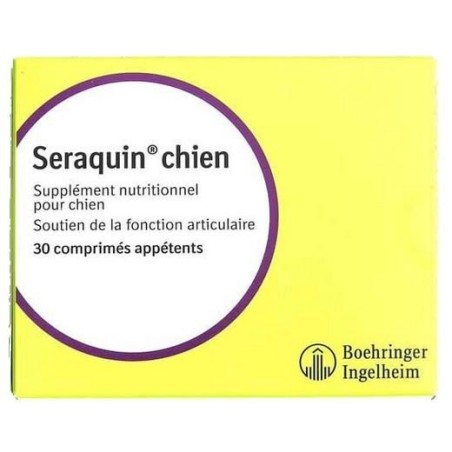 Seraquin est un complément alimentaire pour les articulations du chien et l’arthroseSupplément nutritionnel permettant le soutien de la fonction articulaire chez le chien âgé ou prédisposé aux atteintes du cartilage ou après une chirurgie articulaire.