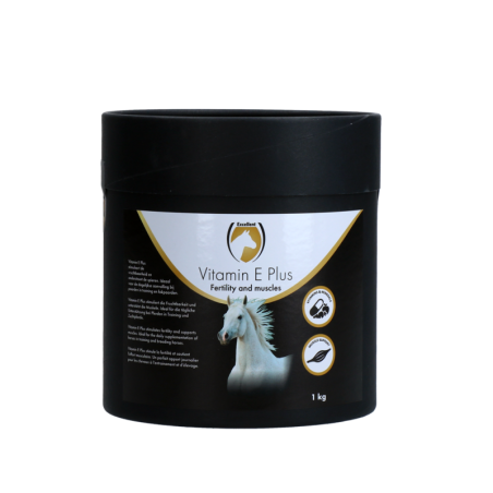 Vitamine E Plus est un complément équilibré à base de vitamine E, de sélénium et de lysine, essentiels pour le maintien des muscles, la résistance et la fertilité des chevaux.