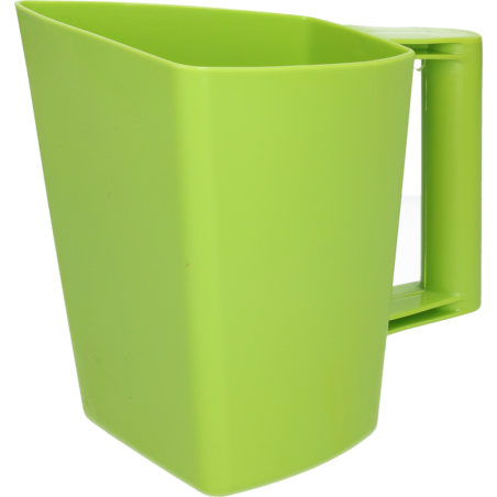 La pelle à nourriture en plastique robuste de 2 litres est équipée d'une graduation intérieure pour faciliter le dosage de la nourriture. Disponible en trois variantes de couleurs (transparent, vert et rose), elle mesure 19,5 x 15 x 19 cm.