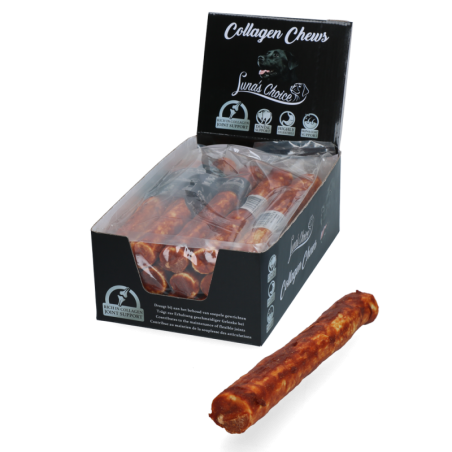 Les bâtonnets au collagène au saumon Luna's Choice sont des friandises pour chiens à mâcher au saumon, riches en collagène pour le bien-être des articulations, de la peau et du pelage.