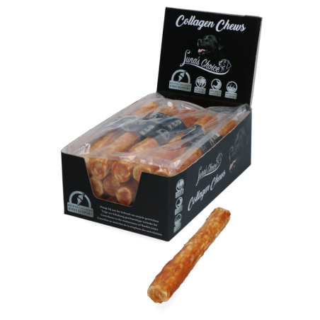 Les bâtonnets de collagène Luna's Choice au poulet sont des friandises pour chiens riches en collagène, idéales pour le maintien des articulations, de la peau et du pelage. Ils aident également à nettoyer les dents et à éliminer la plaque dentaire.