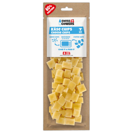 Les cubes de fromage sont confectionnés à partir de barres de fromage SwissCowers, riches en protéines et en calcium grâce au lait suisse utilisé. Ces friandises naturelles et sans gluten, lactose ni conservateurs sont idéales pour les petits et grands chiens. Faciles à mâcher, elles offrent une texture croustillante irrésistible.