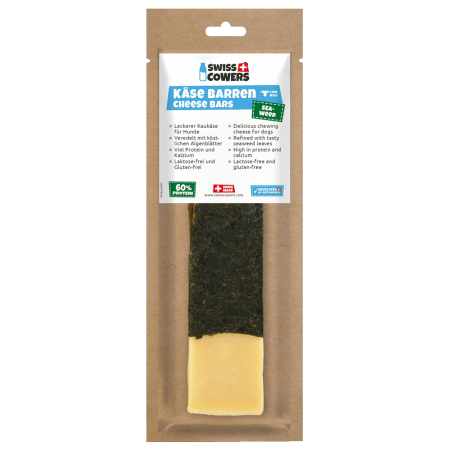 Offrez à votre chien une délicieuse friandise saine et équilibrée avec les barres de fromage SwissCowers aux algues, fabriquées avec soin en Suisse pour le plus grand plaisir de votre compagnon à quatre pattes.