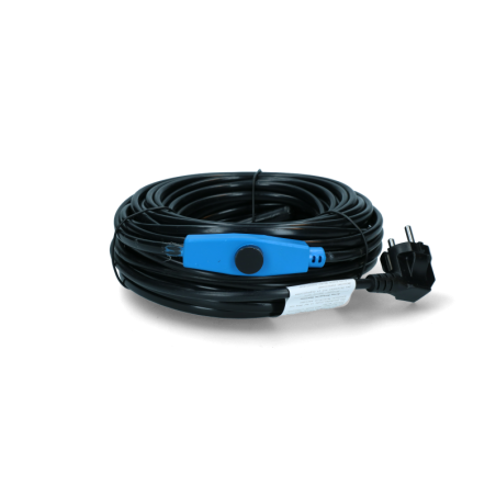Le câble thermique se fixe facilement autour de la conduite d'eau pour empêcher le gel grâce à sa chaleur. Equipé d'un thermostat avec contact de sonde, il se déclenche automatiquement à 3 °C pour éviter le gel des conduites. Associé à une isolation adéquate, ce câble offre une protection antigel fiable jusqu'à -45 °C maximum.