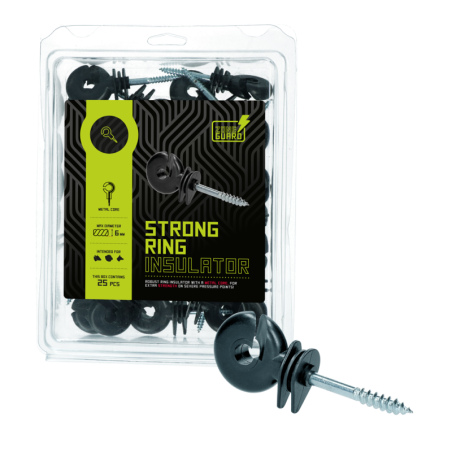 Découvrez l'isolateur annulaire noir de 5,3 mm, conçu pour une résistance accrue aux points de pression importants. Idéal pour les bovins, les moutons et les chiens, ce lot de 25 pièces est un accessoire essentiel pour votre clôture électrique.