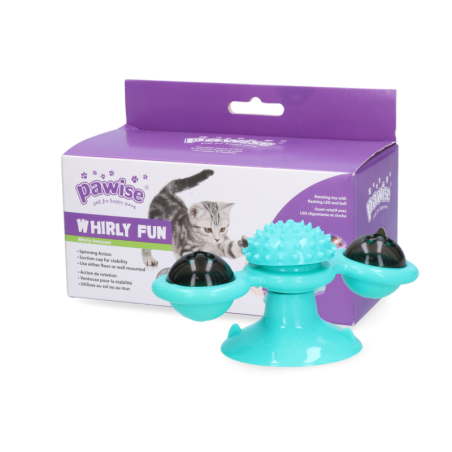 Le Twirly Whirly est un jouet amusant pour chat doté d'une grande ventouse pour une fixation solide au sol ou au mur. Il peut être rempli d'une clochette et/ou d'une lumière LED pour stimuler l'exercice physique et offrir des heures de divertissement à votre chat.