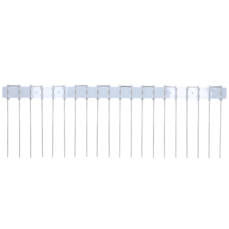 Les piquets sont fabriqués avec une base en polycarbonate stabilisé aux UV et des piquets en acier inoxydable 304 extra-épais de 1,9 mm, garantissant une résistance aux intempéries et une durabilité optimale. La hauteur des piquets est ajustable pour s'adapter parfaitement à la toiture, et ils peuvent être coupés à la taille souhaitée. La longueur de la bande est de 50 cm et peut être fixée par collage, vissage ou à l'aide des clips correspondants. Disponibles en transparent et en noir, ces piquets sont vendus par boîte de 50.