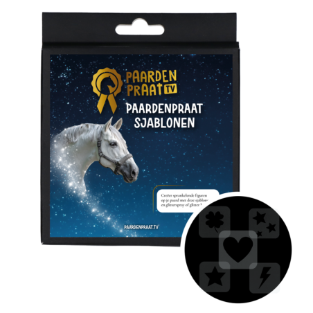 Transformez votre cheval en une œuvre étincelante avec les pochoirs Paardenpraat TV et les produits Glitter Glamour ou Glitter Hoof Polish.