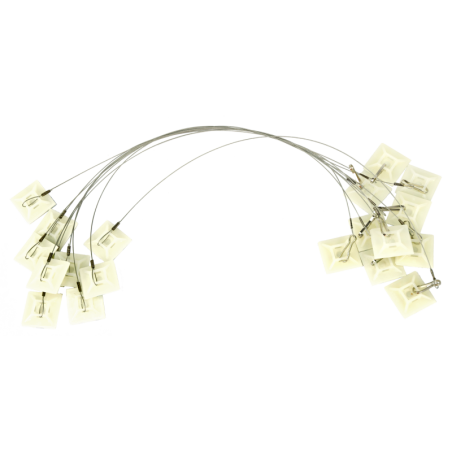 Ce lot de 10 ancres à pâte est prêt à l'emploi et conditionné par 10 pièces. Les dalles sont dotées d'un adhésif puissant pour assurer une fixation efficace, et les fils sont gainés pour une utilisation aussi bien en intérieur qu'en extérieur. Avec une longueur entre les attaches de 29,5 cm, ces ancres sont idéales pour sécuriser vos appâts et maintenir une lutte efficace contre les nuisibles.
