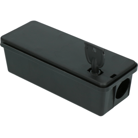 Ce tunnel est équipé d'un cadenas et d'une clé pour assurer la sécurité de l'appât. Il convient à tous types d'appâts et dispose d'un support facilitant le placement d'un bloc ou d'une pâte. Le fond du tunnel est doté de trous de drainage et peut être fixé au sol pour une utilisation optimale.
