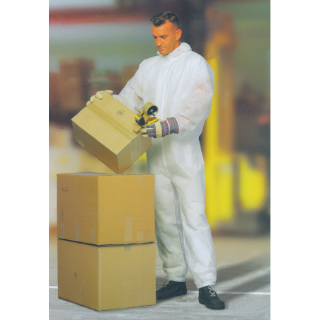 Cette combinaison est fabriquée en PP non tissé et dispose d'une fermeture éclair ainsi que d'une capuche pour une protection complète. Les élastiques au niveau des poignets, des chevilles et de la capuche assurent un ajustement parfait. Conforme aux normes CE, elle garantit une protection fiable lors de diverses activités.