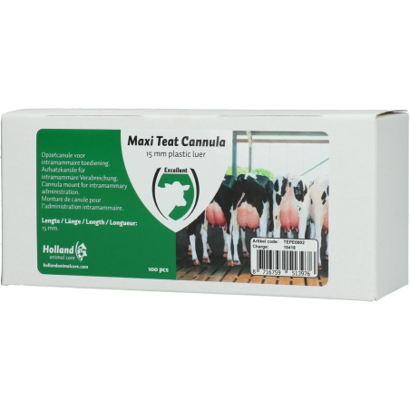 Pour utiliser la maxi canule en plastique pour tétine 15 mm, fixez-la fermement sur une seringue jetable et insérez-la délicatement dans le canal mammaire de l'animal. Veillez à suivre les recommandations de dosage spécifiques à chaque situation pour une administration sûre et efficace.