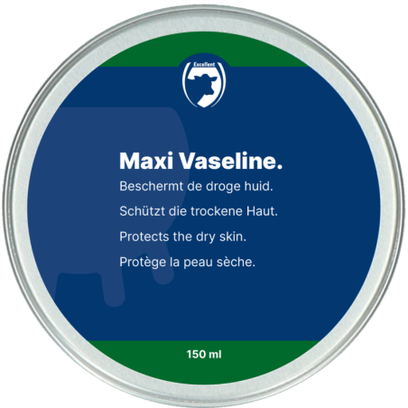 Maxi-Vaseline offre une excellente protection pour la peau, ne s'élimine pas à l'humidité et maintient la peau souple. Elle protège contre les agressions extérieures telles que la pluie, le vent et les rayons du soleil. Maxi-Vaseline est efficace pour traiter les mamelons rugueux, les mains rugueuses, la peau et les lèvres gercées. Elle est également recommandée pour les chevaux, les chiens et même les pneus de voiture en période de gel.